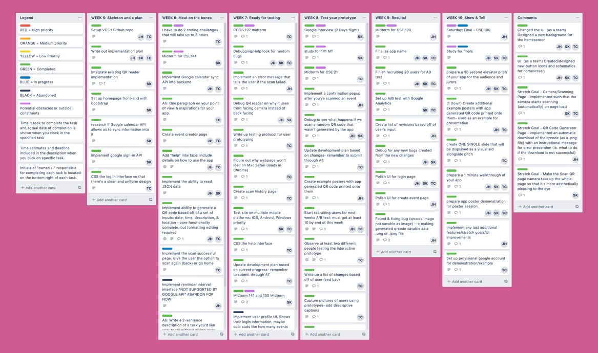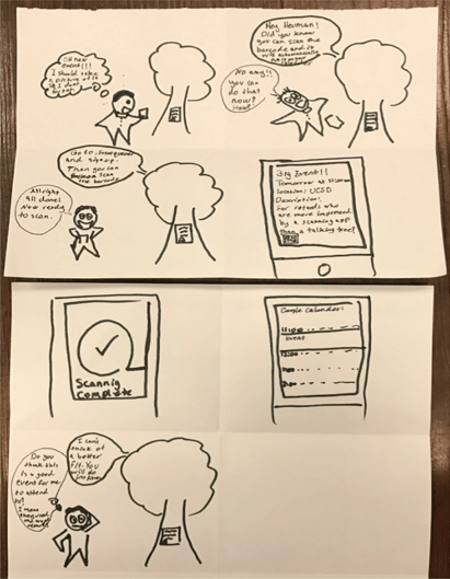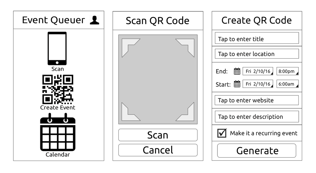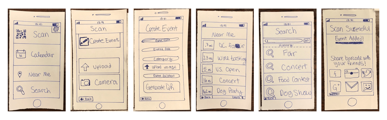We tested both paper prototypes with several classmates by simulating functionality through the Wizard of Oz technique. They reacted positively to the QR scanner idea because it was a faster way of recording events into their calendar. They felt that the social reminder app was too similar to Facebook events.