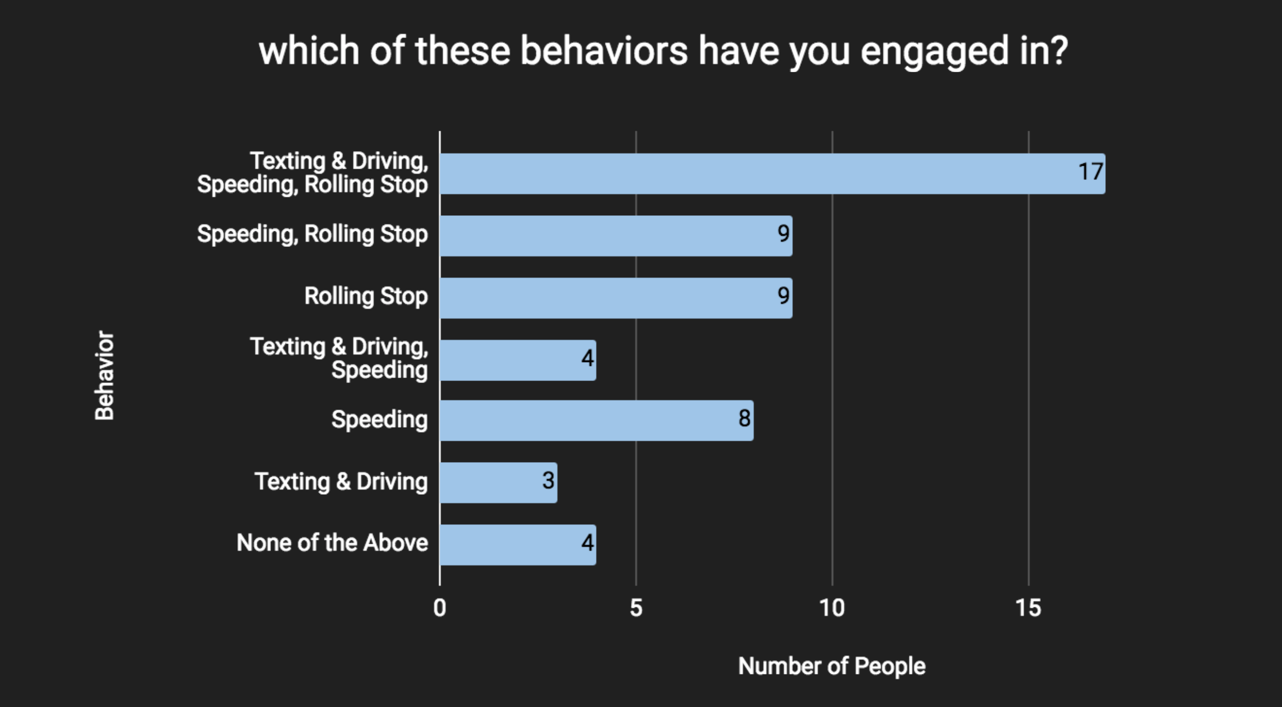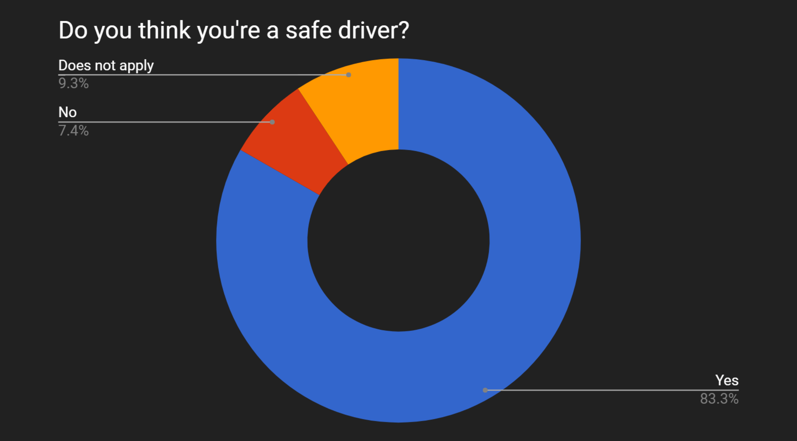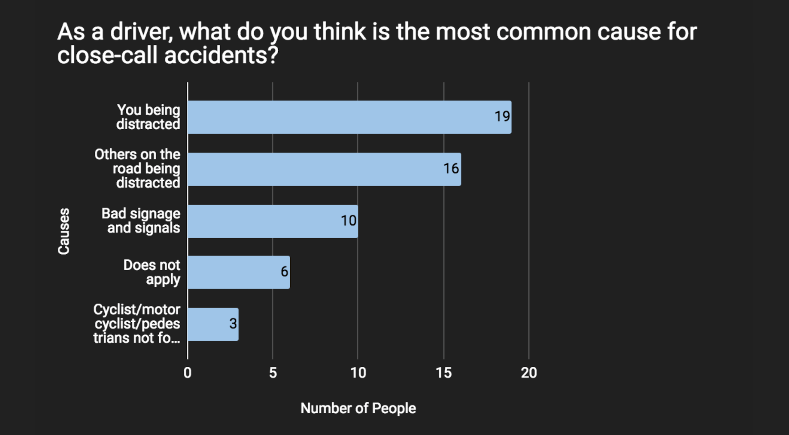 We also conducted an online survey asking people about their driving patterns. The replies indicated that people knew distractions were the main cause for accidents, but it was difficult to stop such behaviors. Users typically thought that they were good drivers, even though more than half of them were involved in an accident.