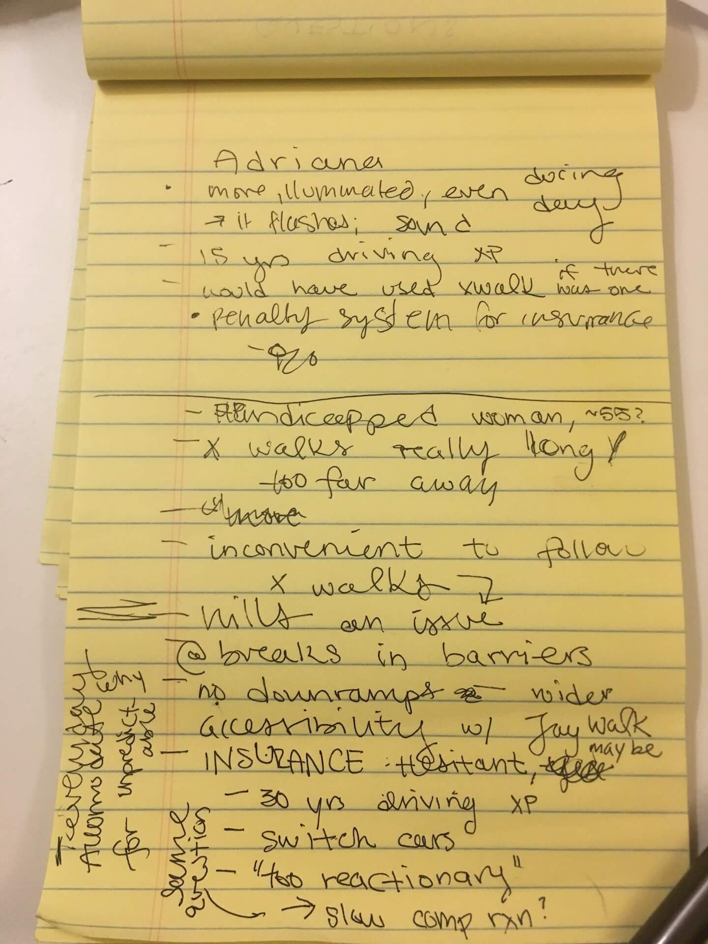 We began our needfinding research with San Diego’s Vision Zero Initiative, which proposed to have 0 commuter casualties by 2025. We began by observing drivers at the Fatal 15 intersections, which are famous for the highest number of pedestrian injuries and deaths in the past 15 years.